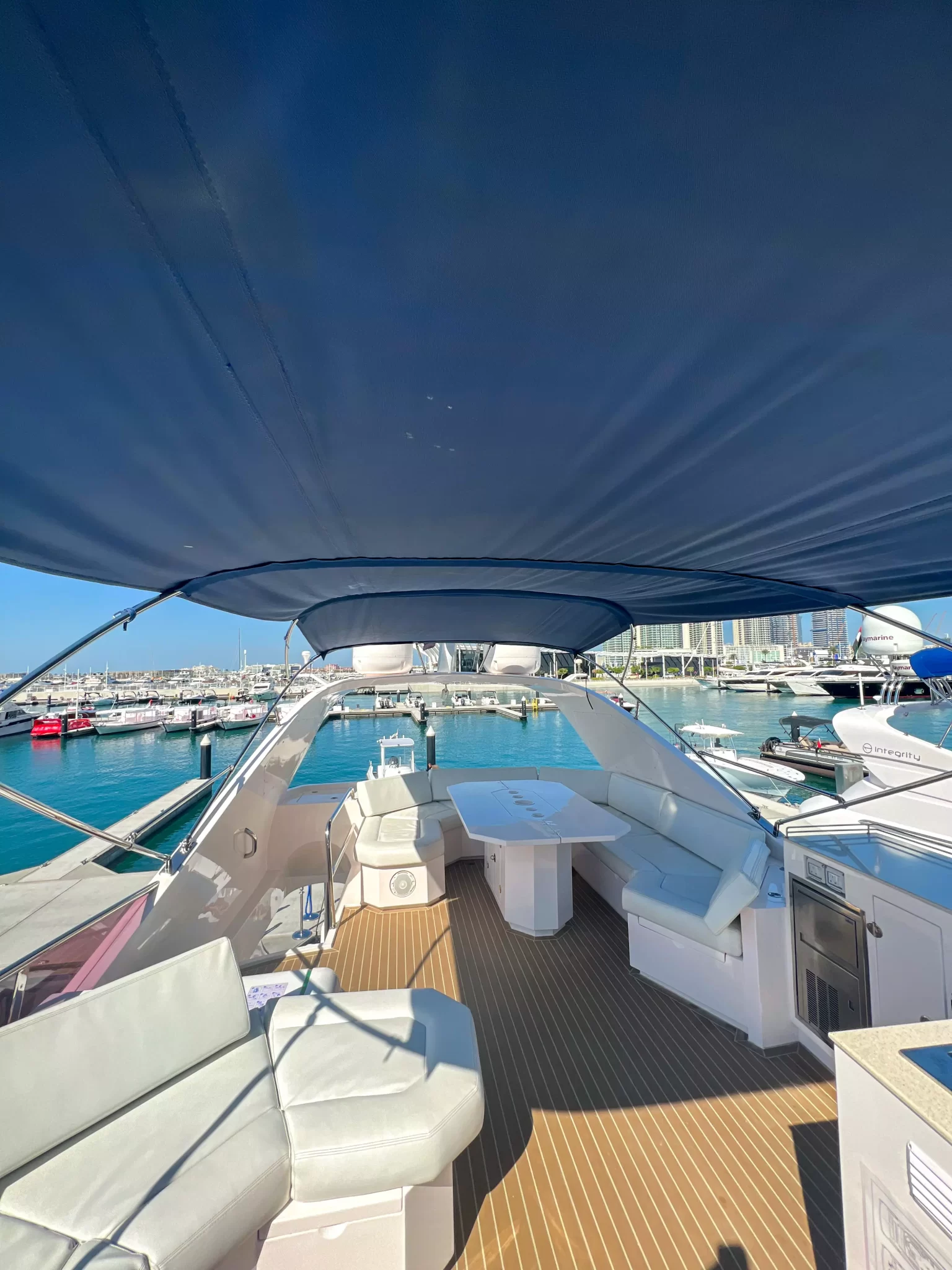 Montez à bord de notre Yacht privé Integrity de 70ft pour profiter du magnifique littoral de Dubaï. Il peut accueillir jusqu’à 30 personnes.