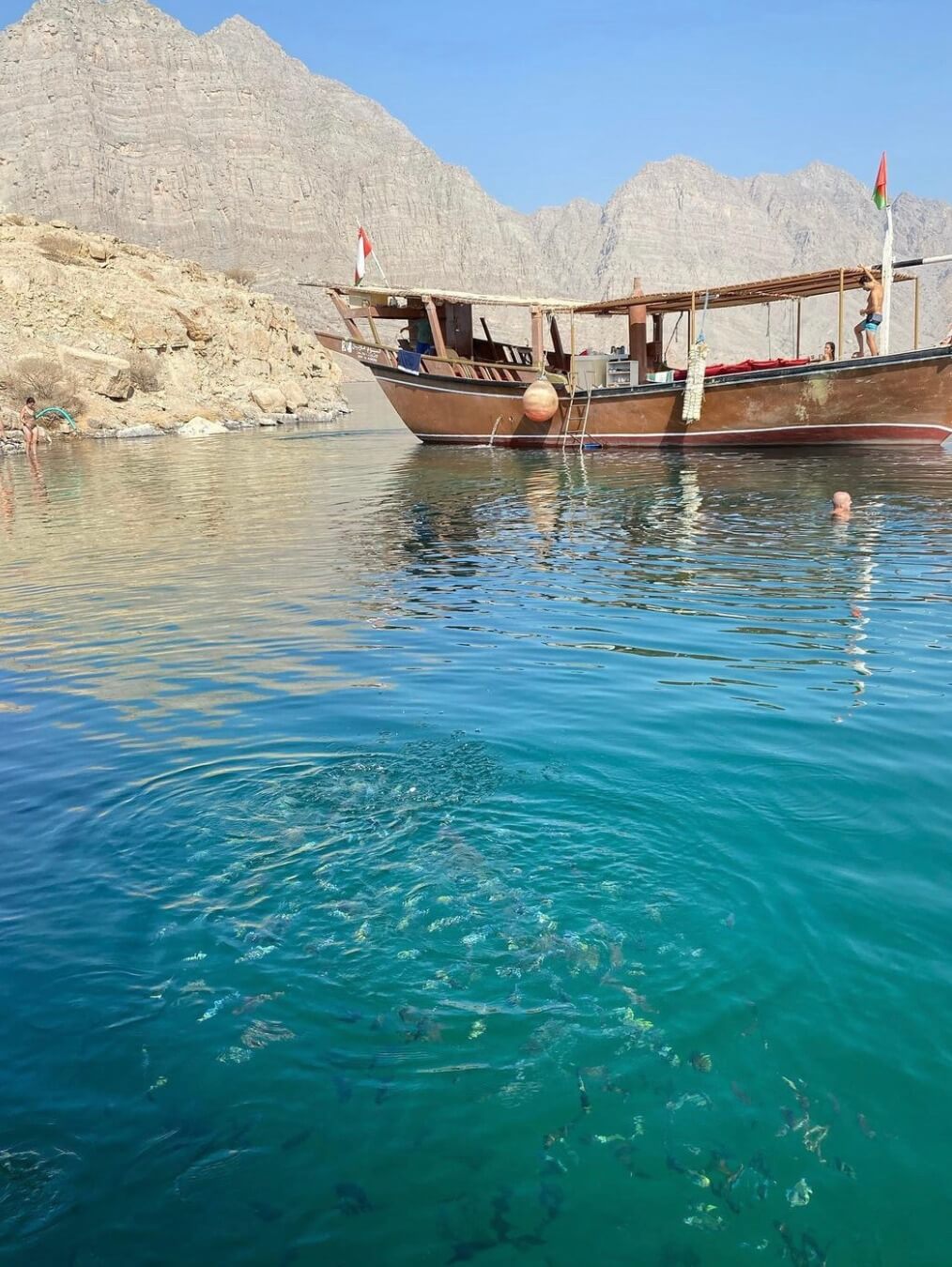 Évadez-vous le temps d’une journée avec une croisière à Musandam, une enclave montagneuse d’Oman située à seulement 2h30 de route de Dubaï. Montez à bord d’un bateau traditionnel omanais (dhow) et partez à la découverte des fjords spectaculaires de la région, surnommés le « petit Norvège d’Arabie ».