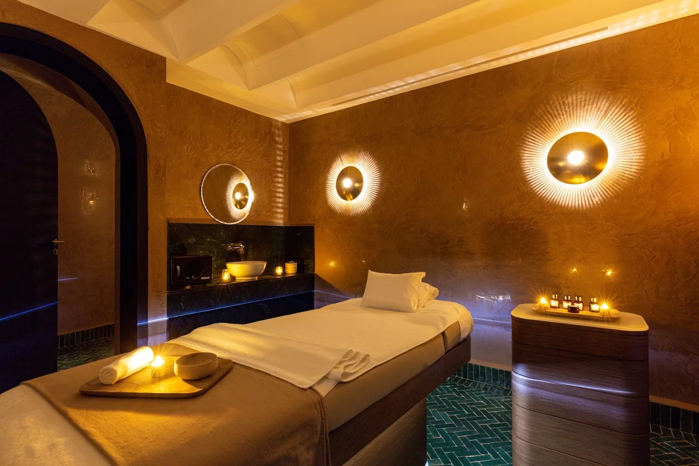 Découvrez un décor somptueux et une atmosphère envoûtante, spécialement pensée pour créer une ambiance de détente totale. Que ce soit pour un massage relaxant, un soin du visage rajeunissant ou une expérience de hammam traditionnel, chaque traitement est conçu pour vous offrir un moment d’évasion et de régénération.